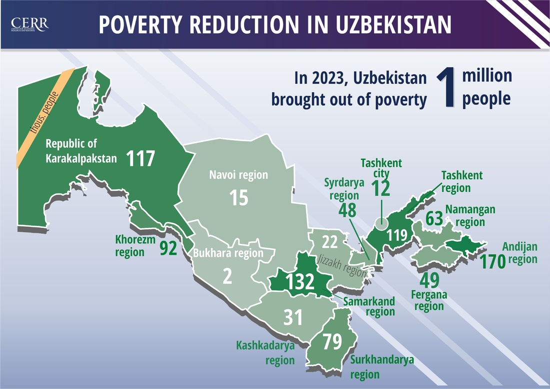 The CERR jointly with the Statistics Agency, assessed the level of monetary poverty in Uzbekistan. By the end of 2023, poverty in the country decreased by 3.1 percentage points. The experts explained how the poverty profile has changed and in which regions the incomes of the population have shown the greatest growth.