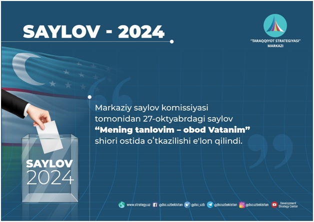 “Менинг танловим – обод Ватаним” шиори нафақат ушбу сайловларнинг руҳини акс эттиради, балки Ўзбекистон раҳбариятининг демократик давлат қурилиши ва фуқароларнинг имкониятларини кенгайтиришга бўлган мустаҳкам садоқатини ҳам намоён этади. 120 000 дан ортиқ сайлов комиссияси аъзолари, 70 000 фуқаро ва кўплаб халқаро кузатувчилар иштирок этар экан, сайловлар шаффоф ва инклюзив жараён бўлиб, ушбу садоқатни яна бир бор тасдиқлайди.